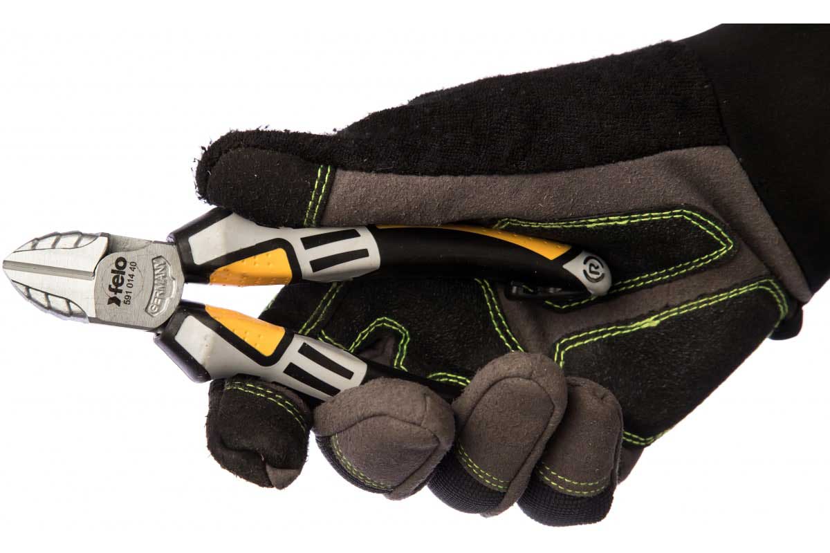 Бокорезы 145 мм Felo 59101440 — ручной инструмент для перекусывания проволоки и проводов на производстве или в быту. Рабочая часть выполнена из закаленной в масле хромванадиевой стали, благодаря чему инструмент отличается повышенной прочностью. Бокорезы имеют диэлектрическое покрытие, поэтому подходят для работ под напряжением. Эргономичные ручки выполнены из двухкомпонентного пластика, обладающего противоскользящим свойством.