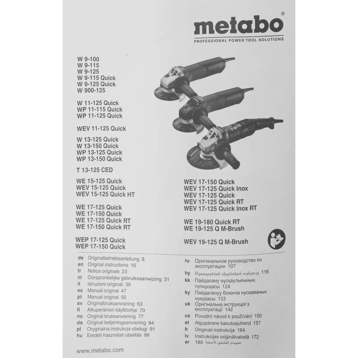 Машина шлифовальная угловая Metabo WEV 11-125 Quick (603625500) в Санкт-Петербурге