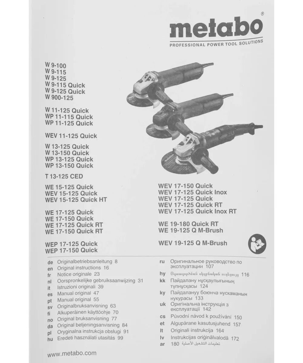 Описание товара Машина шлифовальная угловая Metabo WEV 11-125 Quick (603625000)