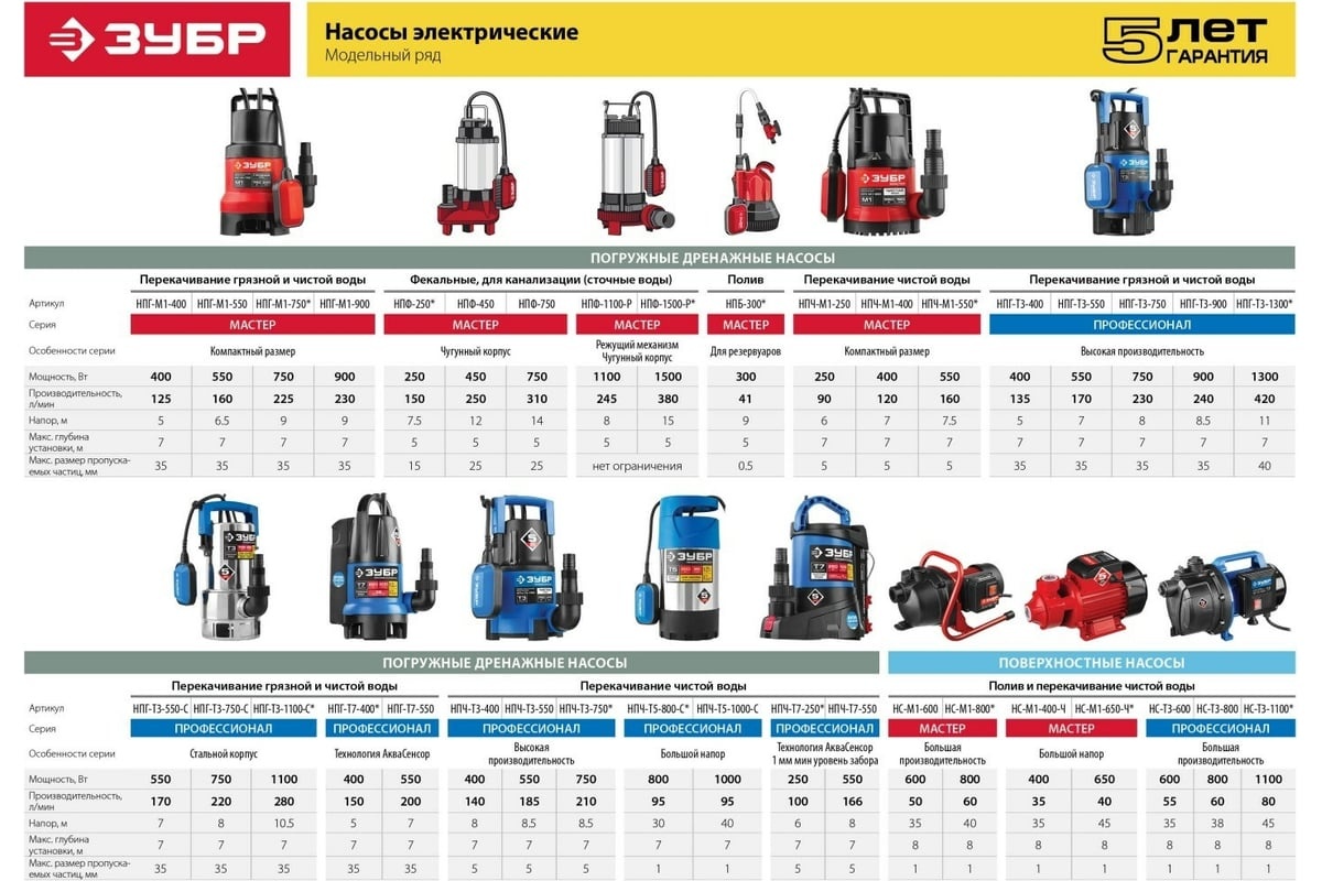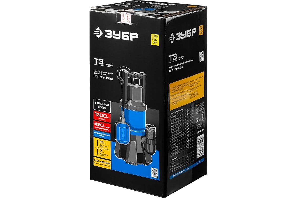 Отзывы о товаре Насос погружной дренажный Зубр Профессионал Т3 НПГ-Т3-1300
