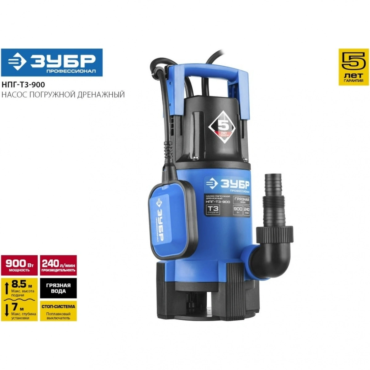 Насос погружной дренажный Зубр Профессионал Т3 НПГ-Т3-900 в Санкт-Петербурге