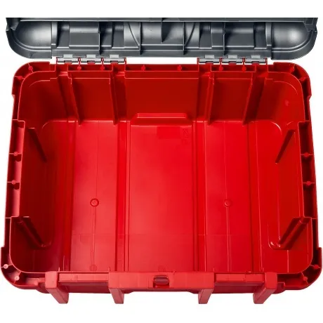 Прочный ящик с усиленными стенками и съемной полкой позволят организовать удобное хранение инструментов, а благодаря широкой ручке смещать центр тяжести ящика, если это необходимо при его переноске.