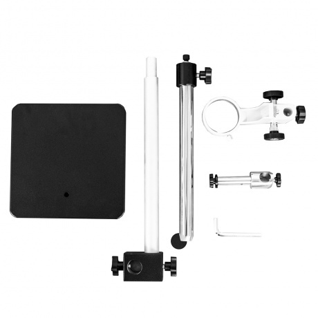 Универсальный штатив TD-1 с четырьмя степенями свободы. Штатив обеспечивает возможность перемещения оптической головки в горизонтальном направлении до 320 мм и вертикальном направлении до 300 мм. Оптическая головка бинокулярная MC-2-ZOOM вар. 1 или тринокулярная MC-2-ZOOM вар. 2 устанавливаются в кольцо кронштейна. Возможна комплектация штатива механизмом фокусировки для установки оптической головки МС-4-ZOOM.