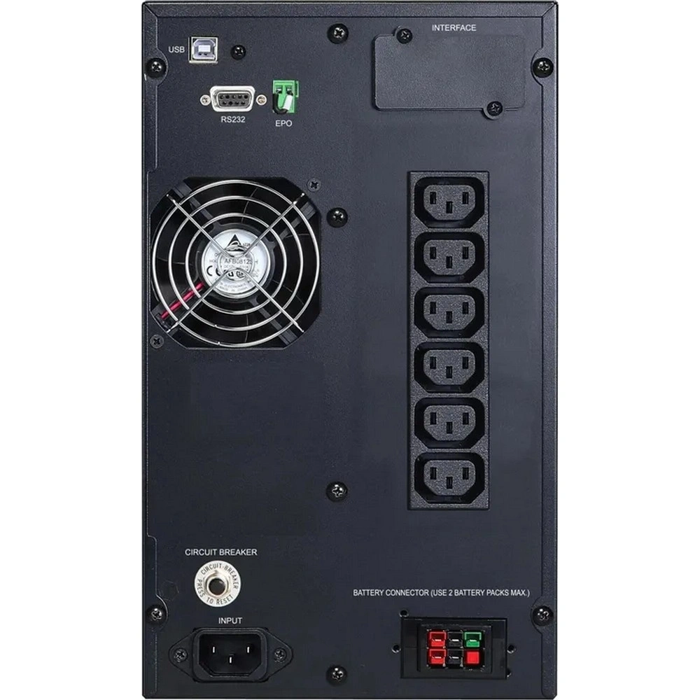 Устройство работает по принципу двойного преобразования (онлайн), обеспечивая минимальное время переключения на батарею — всего 4 мс, что делает его идеальным для защиты чувствительных электронных устройств. При этом напряжение подается в форме модифицированной синусоиды, что подходит для большинства типов загрузок.