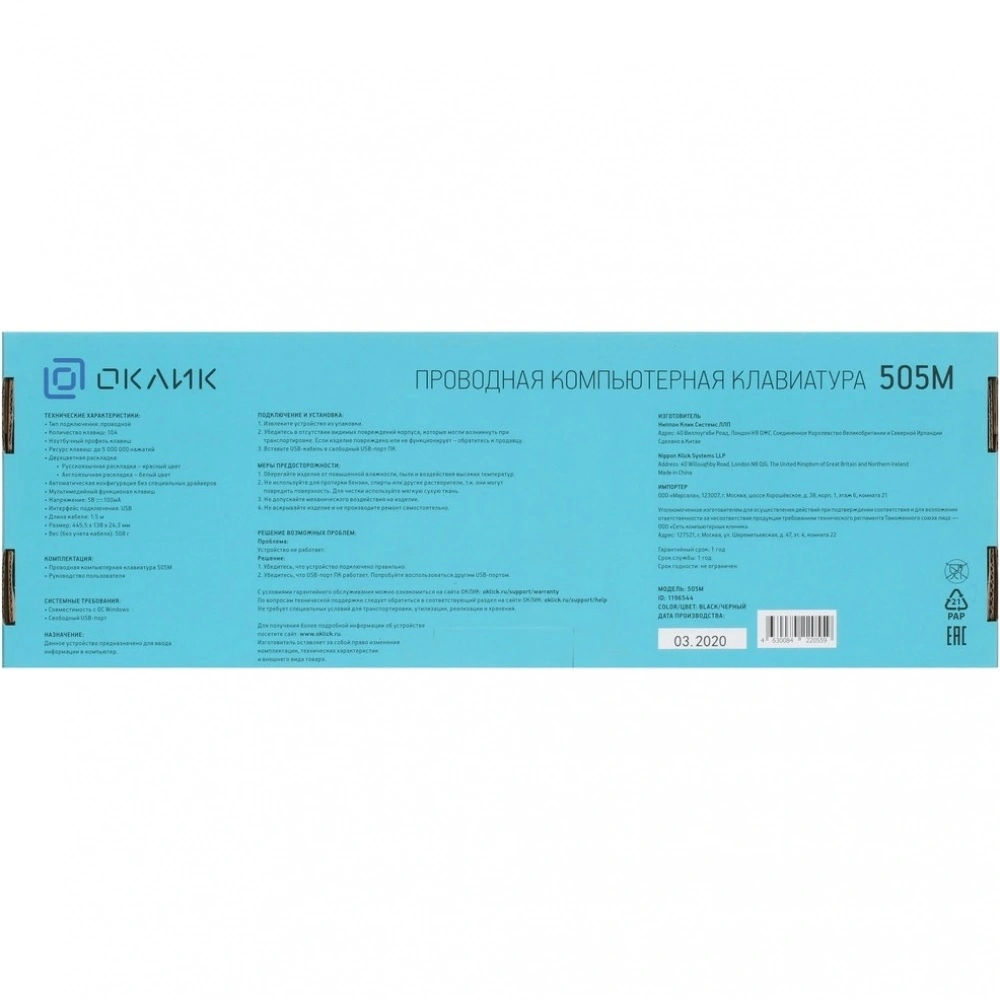Это устройство станет отличным выбором для тех, кто ищет надёжное и практичное решение для работы или домашнего использования. Бренд Oklick известен своей качественной продукцией, а данная клавиатура—не исключение.