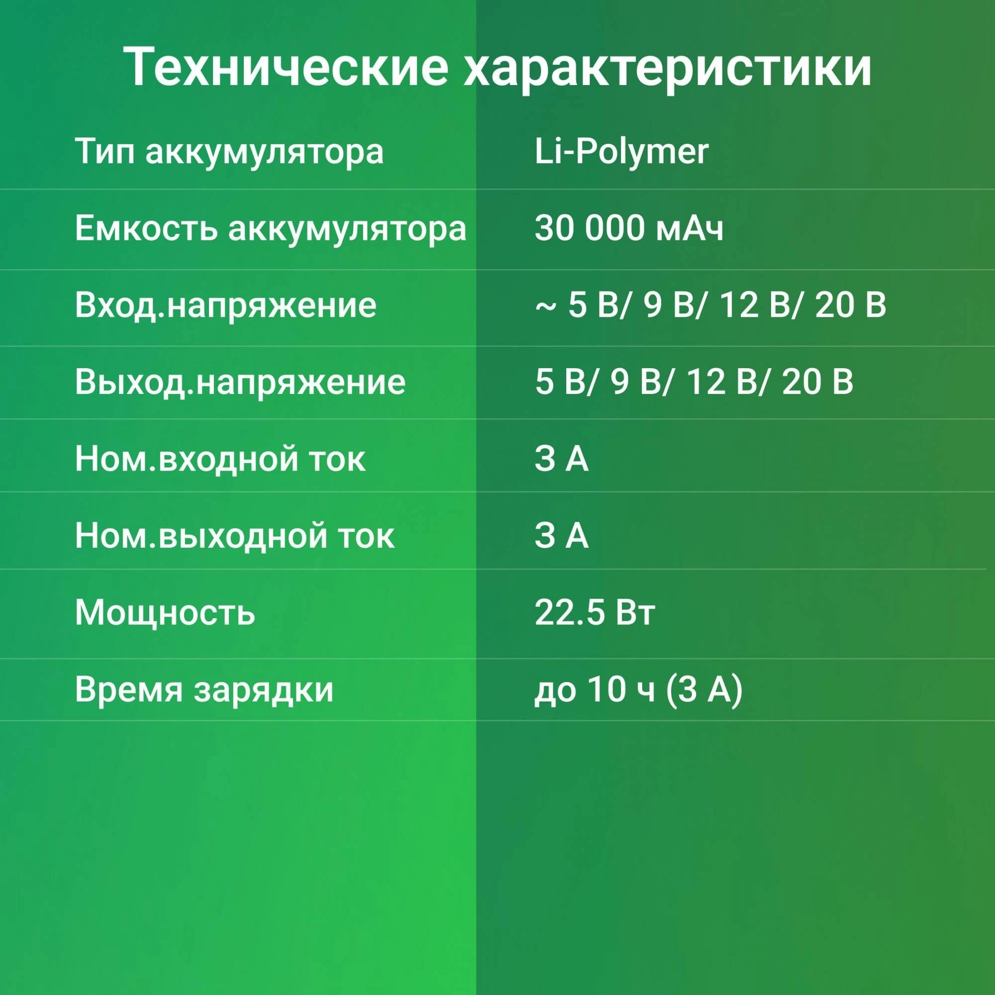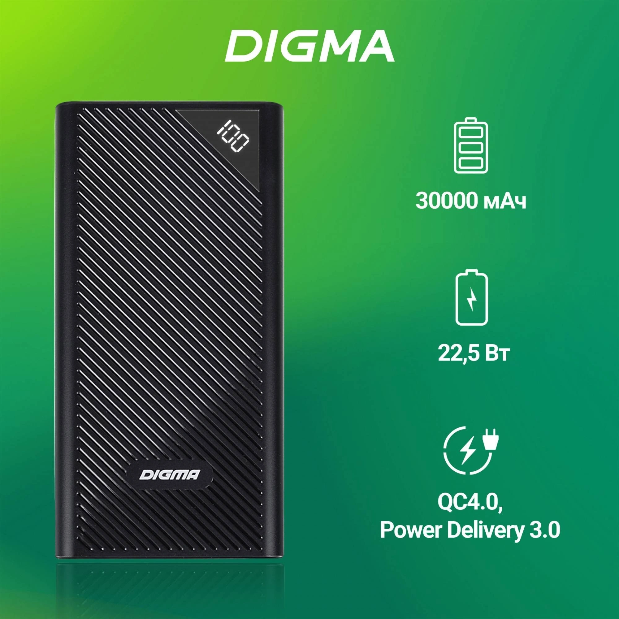 Внешний аккумулятор Digma – это надежное и мощное устройство, которое обеспечит ваш гаджет энергией в любой ситуации. С впечатляющей емкостью 30000 мА·ч, он способен несколько раз зарядить ваш смартфон или любое другое устройство, что делает его идеальным спутником как в поездке, так и в повседневном использовании.