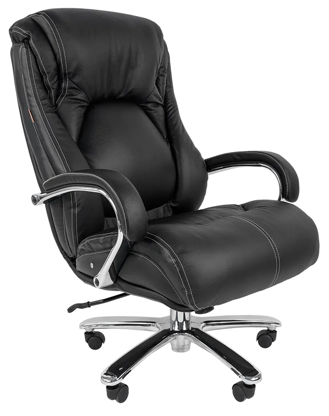 Металлические хромированные подлокотники с мягкими накладками, обитыми натуральной кожей. Усиленная хромированная крестовина. Механизм подъема: газпатрон - 4 класс по стандарту Germany DIN 4550.