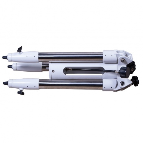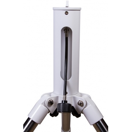 Колонна Sky-Watcher обладает хорошей устойчивостью и высокой грузоподъемностью. Она более надежно удерживает телескоп, чем стандартная тренога. Колонна опирается на стальные ножки, длину которых можно регулировать. Для фиксации высоты треноги используются специальные винты. Колонна Sky-Watcher создана специально для монтировок AZ-EQ5GT. Монтировка ставится на установочный штифт в верхней части колонны, затем закрепляется центральным винтом-фиксатором.