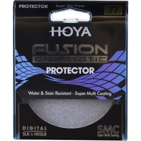 Главной особенностью серии Fusion Antistatic является специальное антистатическое покрытие поверхностей стекол, исключающее прилипание пыли на фильтр. Также капли воды не задерживаются на нем, а сразу скатываются вниз. Защитный фильтр Protector Fusion Antistatic предохраняет переднюю линзу объектива от ударов, царапин и загрязнения, оказывая минимальное влияние на качество проходящего через него света.
