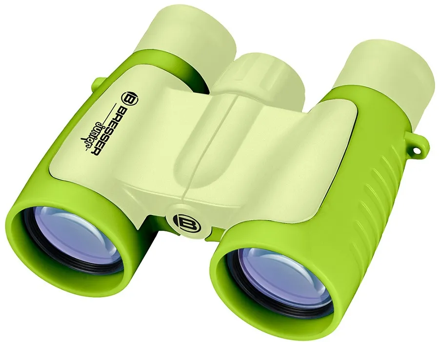 Bresser Junior - детский небольшой и легкий бинокль, в который можно наблюдать за птицами и животными, а также городскими ландшафтами. Оптическая схема построена на базе roof-призм и обеспечивает 3-кратное приближение. Диаметр объективов небольшой (30 мм), но этого вполне хватает для наблюдений в дневное время.