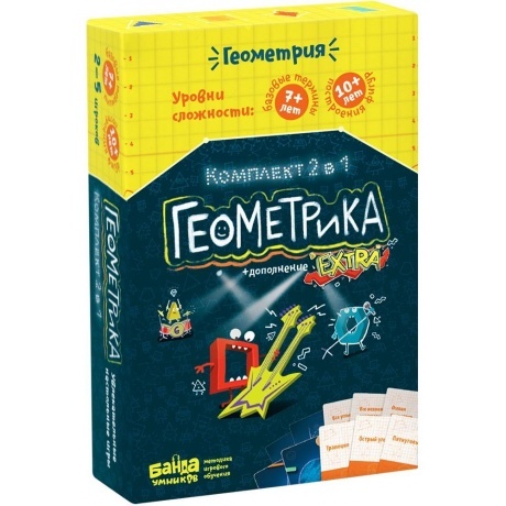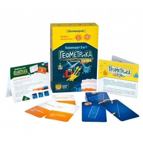 Дополнение "Геометрика EXTRA" — набор дополнительных карточек, которые делают игру динамичнее и сложнее, а также позволяют освоить изрядную порцию новых геометрических понятий.