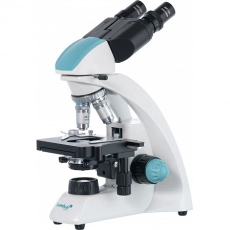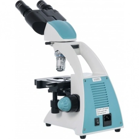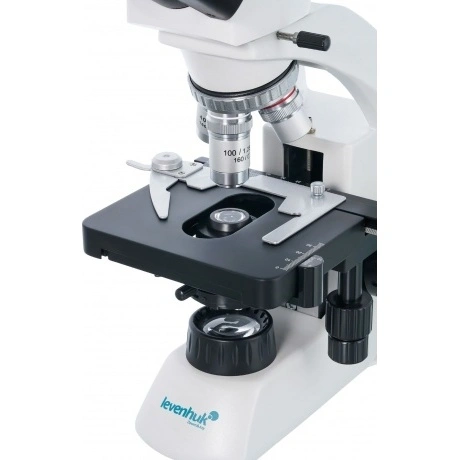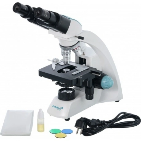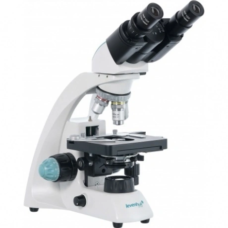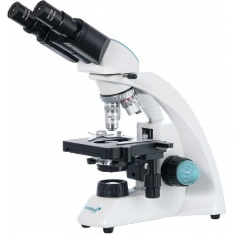 Levenhuk 500B – это лабораторный микроскоп с бинокулярной насадкой и ахроматической оптикой. В нем используется галогенное освещение, которое хорошо подходит для изучения окрашенных образцов. Возможности микроскопа будут интересны микробиологам, медикам, орнитологам, ветеринарам, биохимикам и другим специалистам. Микроскоп можно использовать и для учебных целей в высших учебных заведениях. Наблюдения ведутся в светлом поле. Бинокулярная насадка имеет небольшой наклон, что делает длительную работу с микроскопом более удобной. При необходимости насадку можно разворачивать в любую сторону – доступны все 360°. Широкопольные окуляры дают хороший обзор и обеспечивают 10-кратное приближение. Четыре ахроматических объектива передают контрастное и «живое» изображение, позволяя рассматривать мелкие структуры. Общее увеличение микроскопа находится в диапазоне от 40 до 1000 крат. Объективы 40х и 100х снабжены пружинящими оправами передней линзы, 100-кратный объектив можно использовать для иммерсионных наблюдений.