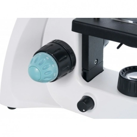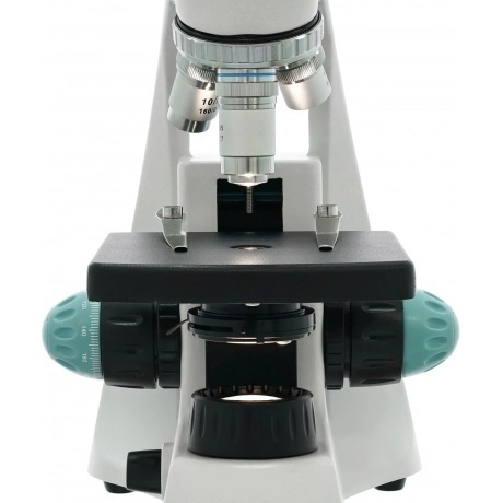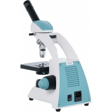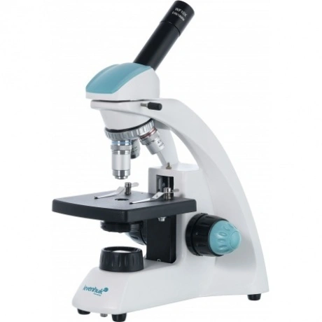 Перед вами лабораторный микроскоп с широкопольной ахроматической оптикой и галогенной подсветкой. Модель Levenhuk 500M станет хорошим выбором для изучения окрашенных гистологических образцов и выполнения других профессиональных микроисследований на увеличении от 40 до 400 крат. Кроме того, этот микроскоп можно использовать для обучения студентов биологических и медицинских вузов и специализированных колледжей. Насадка вмещает только один окуляр. В комплект поставки уже включен 10-кратный окуляр. Визуальный блок может вращаться на 360° и имеет наклон в 45° – это значительно упрощает длительную работу с микроскопом. Револьверное устройство позволяет установить три объектива, в базовой комплектации уже есть три ахроматических объектива с кратностью 4х, 10х и 40х. Пружинящая оправа есть только у 40-кратного объектива.