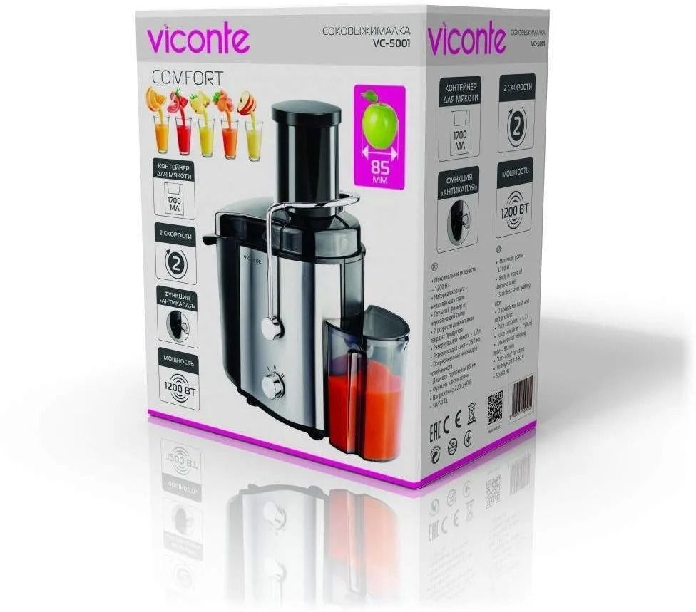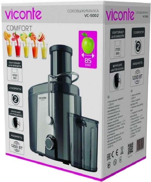 Соковыжималка Viconte VC-5002 - фото, характеристики, описание и цена представлены на карточке товара. Для того, чтобы сразу узнать о поступлении этого товара в наш интернет-магазин, вам надо подписаться на уведомление по email, оставив адрес своей электронной почты в форме выше на данной странице.