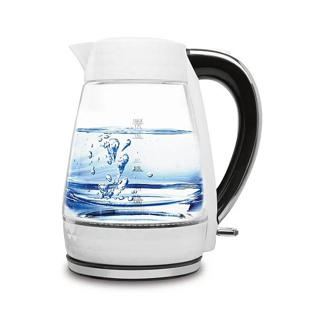 Электрочайник Polaris PWK 1704CGL Diamond представлен в белом корпусе, выполненном из термостойкого стекла. Ручка и крышка модели сделаны из пластика: эти элементы исключают нагрев, что способствует комфортной эксплуатации. Прибор поддерживает закрытый нагревательный элемент, обладающий мощностью 2200 Вт, что способствует быстрому закипанию воды в емкости.