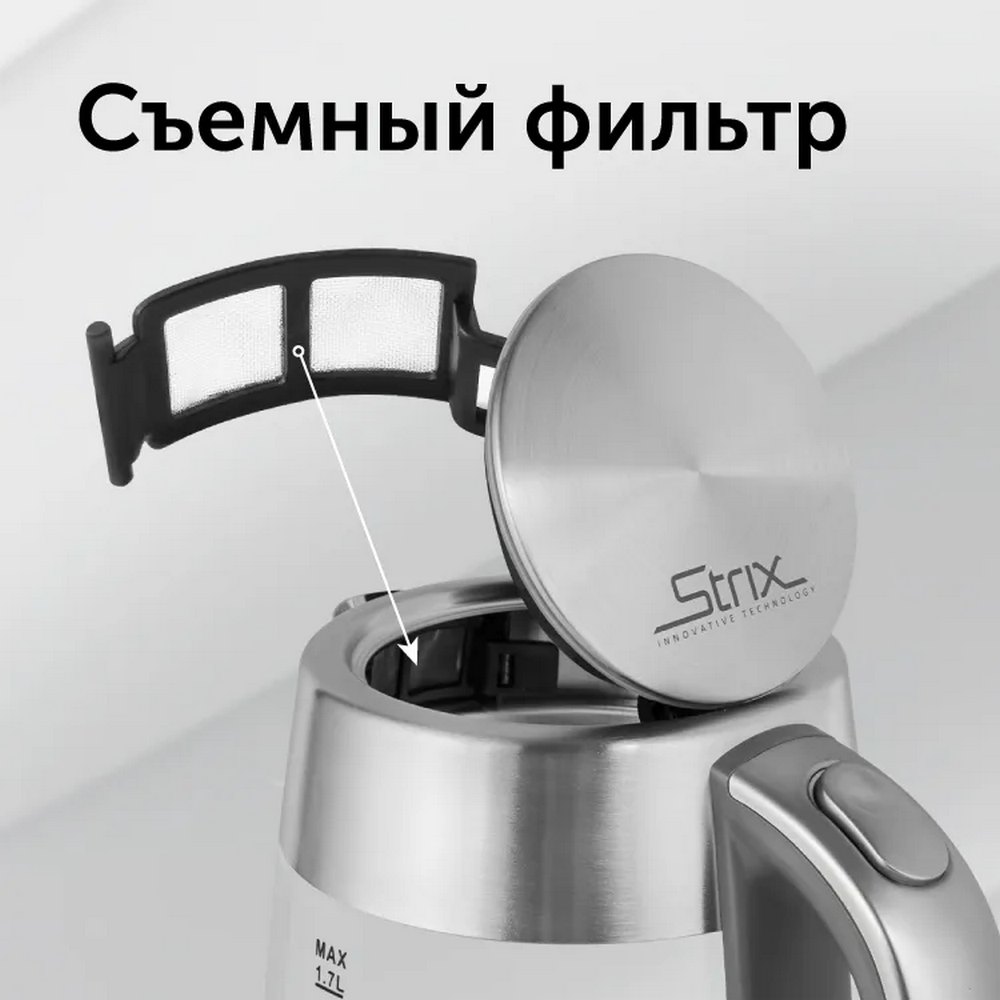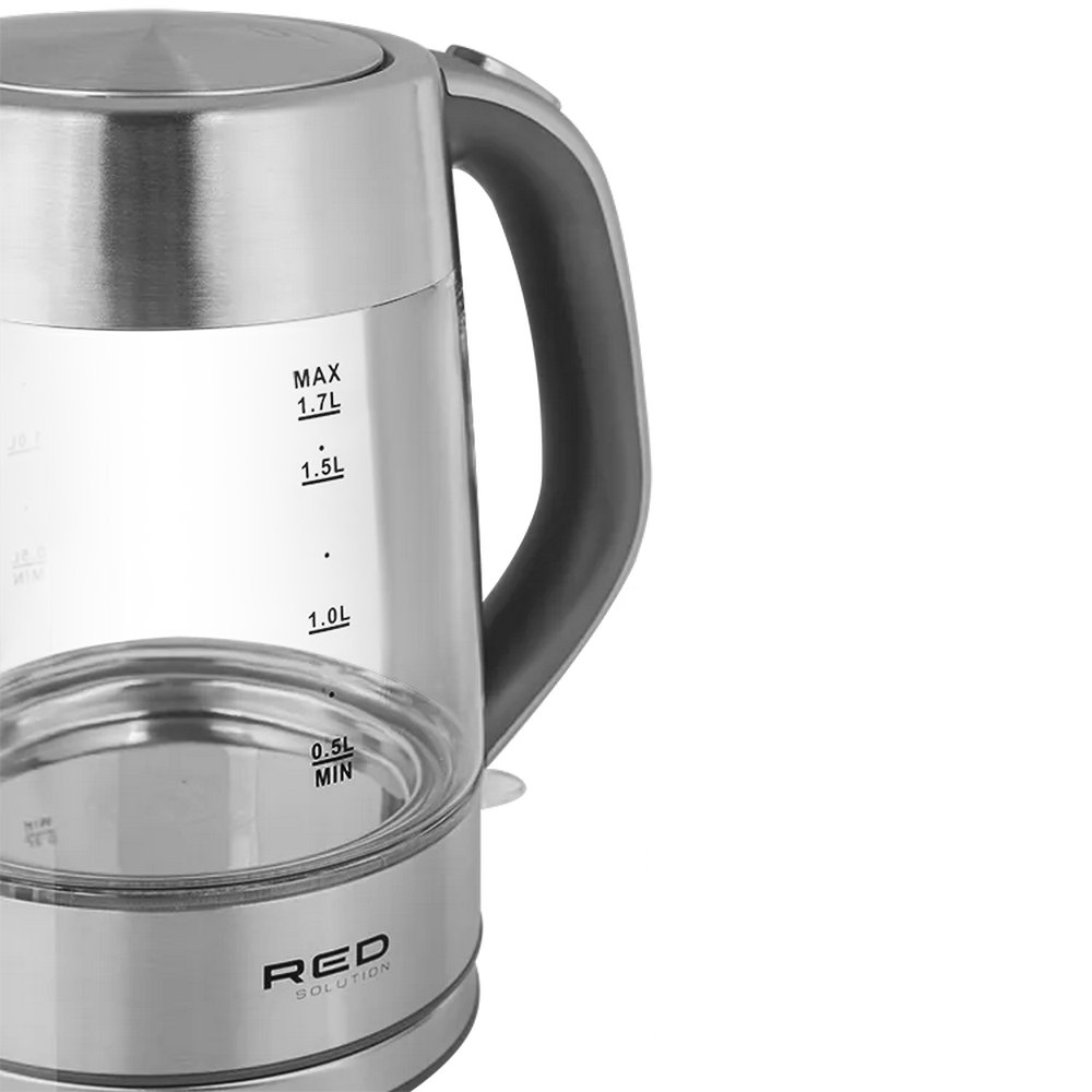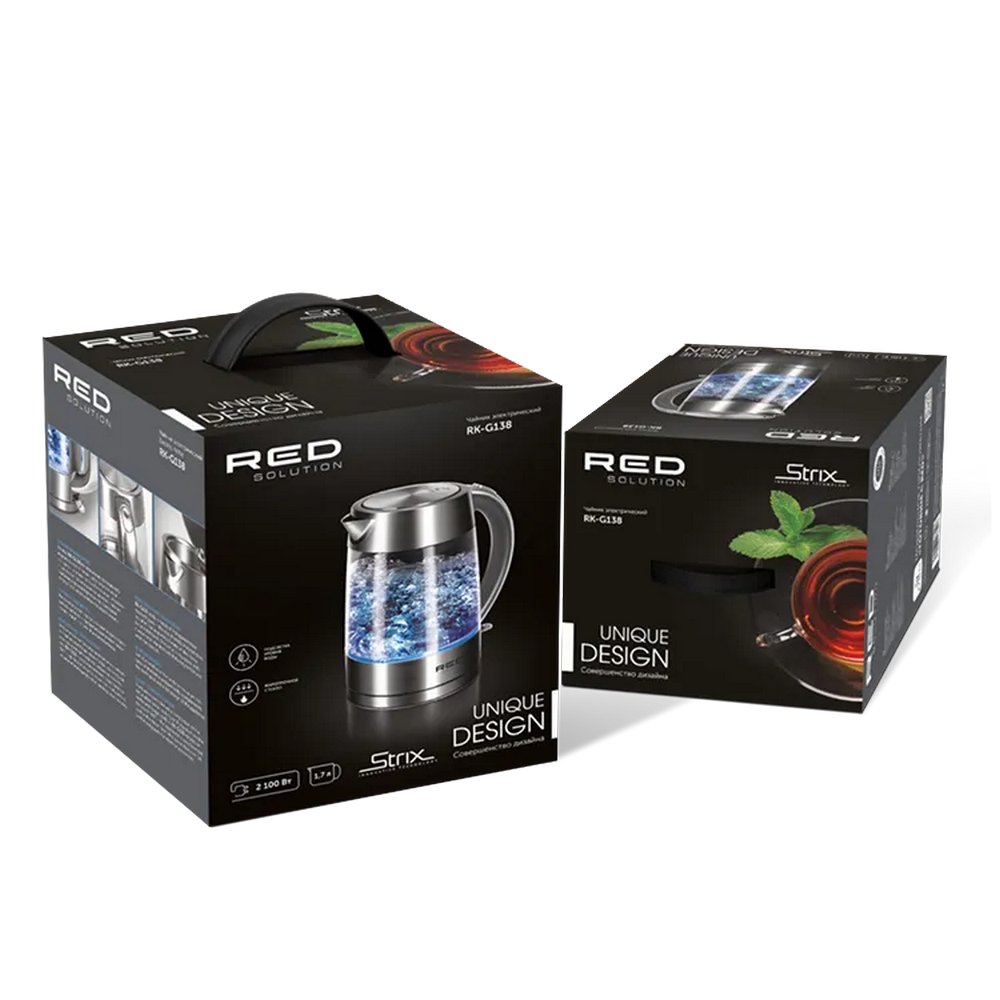 Чайник электрический Red Solution RK-G138 современный прибор для быстрого нагревания и кипячения воды со съемным фильтром от накипи. Колба для воды G138 сделана из жаропрочного стекла экологичного материала, который при нагревании не выделяет вредных веществ. Через прозрачные стенки легко контролировать уровень жидкости в чайнике. Благодаря широкой горловине и плавно откидывающейся на 90 крышке в чайник удобно наливать воду.