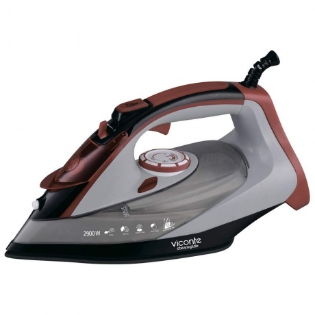 Утюг Viconte VC-4311, мощность 2900W, керамическая подошва, вертикальная подача пара, паровой удар до 140 г/мин, сухое глажение, терморегулятор, функция самоочистки, возможность регулировки степени отпаривания, мощный разбрызгиватель, индикатор нагрева утюга