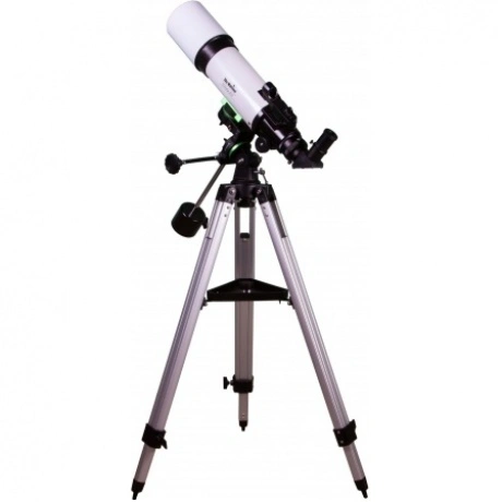Телескоп Sky-Watcher AC102/500 StarQuest EQ1 предназначен для наблюдений Луны, планет Солнечной системы, метеоров, комет, а также ярких туманностей, галактик и звезд. Благодаря небольшому фокусному расстоянию этот рефрактор – один из самых компактных в своем классе, что делает его отличным походным инструментом для изучения космоса и наземных объектов. Он прост в управлении, не требует никаких навыков и станет отличным подарком требовательному любителю астрономии. Оптика собрана из ахроматических элементов, поэтому изображение избавлено от оптических искажений. Объектив хорошо собирает свет, поэтому телескоп подходит для рассматривания тусклых астрономических объектов. Отметим и исчерпывающий набор аксессуаров – в комплект включены два окуляра с разными фокусными расстояниями, диагональное зеркало и искатель с красной точкой. Этот телескоп будет готов к наблюдениям сразу же после сборки!. Экваториальная монтировка управляется двумя ручками тонких движений. Шестерни (122 зубца каждая) с червячными передачами обеспечивают плавный и точный ход, упрощают ведение объектов по небосклону. Крепление оптической трубы к монтировке – «ласточкин хвост». Сама монтировка устанавливается на алюминиевую треногу. Высота треноги регулируемая, есть лоток для аксессуаров.
