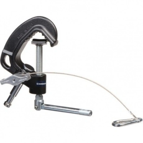 Зажим подходит для труб диаметром от 10 до 55 мм. Изготовленный из стали и алюминия он способен выдержать нагрузку до 100 кг. Для установки оборудования имеется штифт-адаптер 5/8 (16 мм). Также в комплект входит страховочный трос.