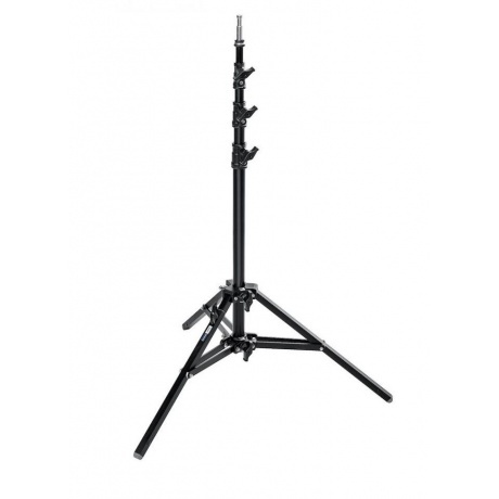 3-х секционная алюминиевая стойка с двумя зажимами, цвет черный. Максимальная нагрузка на стойку 4кг, достигает максимальной высоты 2,50м. Стойка имеет одну выравнивающую ногу для удобства при работе на неровной поверхности. Также имеет верхний крепеж 5/8 (16 мм).