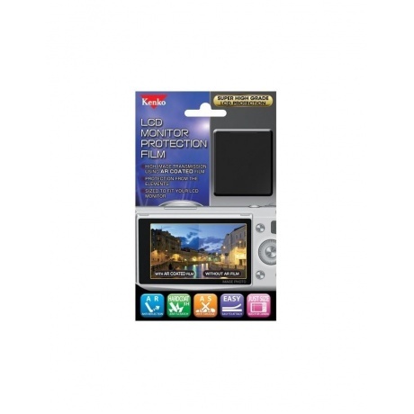 Защитная пленка Kenko имеет отличную светопропускную способность, за счет которой значительно уменьшаются блики и отражения, изменяющие фотографии, сделанные цифровой камерой. Так же она защищает ЖК-дисплей камеры от грязи, царапин и жировых отпечатков. Механизм наклейки пленки прост и удобен, её без труда можно наклеить на поверхность дисплея. Защитная пленка Kenko для ЖК-дисплея с антибликовым эффектом представляет собой базовый слой с нанесенным на его поверхность твердым образующим слоем с многослойным диэлектрическим просветлением. Твердый слой имеет показатель твердости 3H, что является лучшим показателем в мире. Благодаря многослойному диэлектрическому просветлению два вида отраженных световых волн перекрывают друг друга, снижая при этом бликование на внешней поверхности пленки и в то же время пропуская выходящий свет с обратной стороны. Если смотреть на дисплей, защищенный пленкой Kenko, то отражения внешних предметов практически не видно, при этом изображение не теряет яркости и четкости. Разница двух видов просветления в том, что сухое просветление имеет более высокие показатели светопропускания. В производстве защитных пленок применяются 2 вида просветления: мокрое и сухое. Защитная пленка Kenko использует сухое просветление, тогда как другие японские производители используют мокрое. Сухое просветление представляет собой слой из микрочастиц железа, нанесенных на поверхность пленки. Мокрое просветление представляет собой напыление веществ, растворенных в особой жидкости. Структура просветления защитной пленки Kenko включает 4 слоя: 1 твердый образующий слой + 2 слоя из микрочастиц железа + 1 грязезащитный слой. При этом грязезащитный слой представляет собой автономную структуру.
