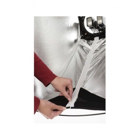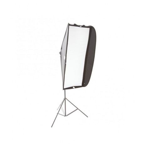 Трансформируемый софтбокс. Размеры 44 х 117 см, максимальный размер 90 х 117 см. На двух боковых панелях установлены молнии, с помощью которых можно быстро изменить размер софтбокса. На стойку устанавливается с помощью кронштейна 2701, на оборудование устанавливается с помощью соответствующих переходников (для Elinchrom Quadra переходники не требуются). В сложенном виде занимает мало места, поставляется в фирменном чехле.