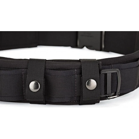 Поясной ремень с застежкой вставляется в кольца многих моделей сумок Lowepro, равномерно распределяя вес и обеспечивая стабильность и удобство размещения сумки аксессуаров, освобождая при этом руки.