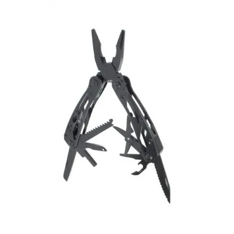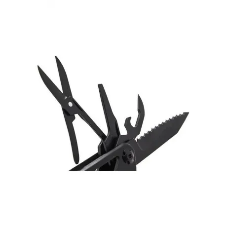 Стильный мультитул G202B от компании Ganzo. Модель имеет продуманный дизайн и большой набор инструментов. В комплект входят следующие предметы: подпружиненные плоскогубцы с кусачками, два лезвия, одно из которых имеет серрейторную заточку, плоская отвертка небольшого размера, ножницы, ножовка по дереву, зенковка, удлинитель адаптера для бит открывалки для бутылок и консервов. Все инструменты изготовлены из нержавеющей стали 440С. Также в комплект мультитула G202B входит набор бит из углеродистой стали. В набор, помимо адаптера, входят 3 плоских отвертки, 3 крестовых отвертки, 3 шестигранных ключа. Мультитул укомплектован чехлом из синтетической ткани для переноски мультитула и бит на поясе.