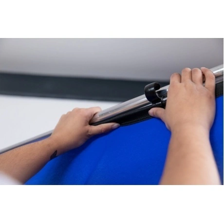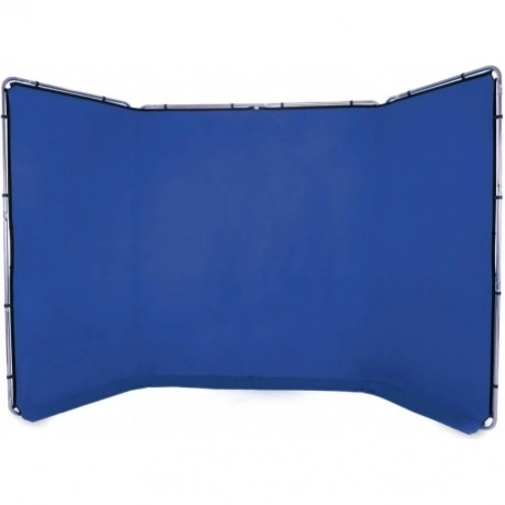 Панорамный синий фон хромакей на складной алюминиевой раме Lastolite LB7943, размером 2.3x4 метра, используются как для выездных съемок, так и в студии. Легкая и плотная фирменная ткань устойчива к выцветанию, рассчитана на большие эксплуатационные нагрузки.