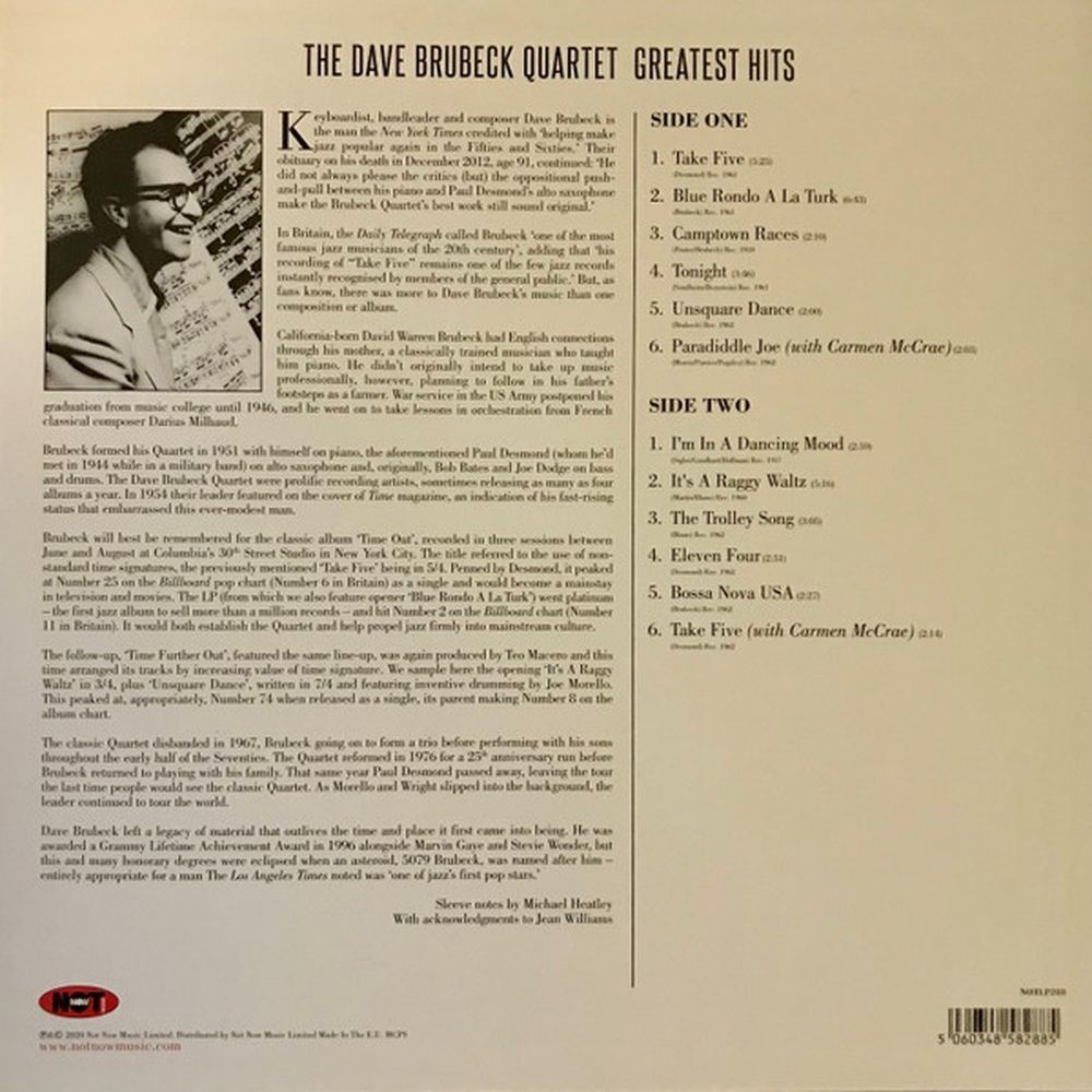 Отзывы о товаре Brubeck, Dave / Quartet, Greatest Hits (5060348582885) виниловая пластинка