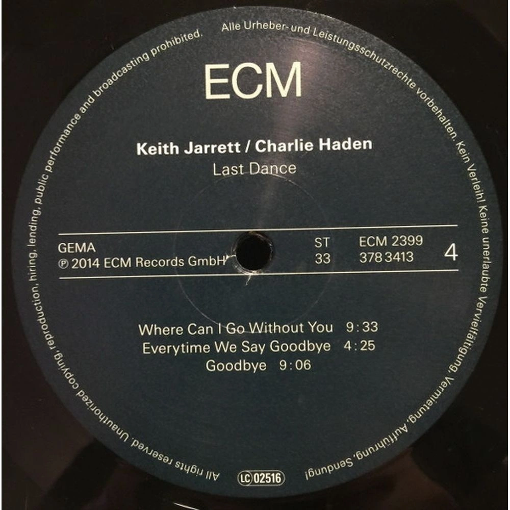 Keith Jarrett & Charlie Haden - Last Dance (0602537822508) виниловая пластинка - описание товара, его характеристики, фото и цены представлены на карточке товара. Чтобы купить этот товар по цене 5617 руб., свяжитесь с нами по телефону 8(812)426-98-99 в Санкт-Петербурге, или оформите покупку через корзину.