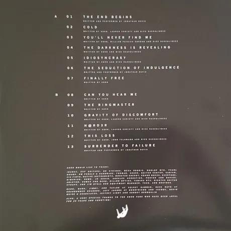 The End Begins, Cold, Youll Never Find Me, The Darkness Is Revealing, Idiosyncrasy, The Seduction Of Indulgence, Finally Free, Can You Hear Me, The Ringmaster, Gravity Of Discomfort, H@rd3r, This Loss, Surrender To Failure