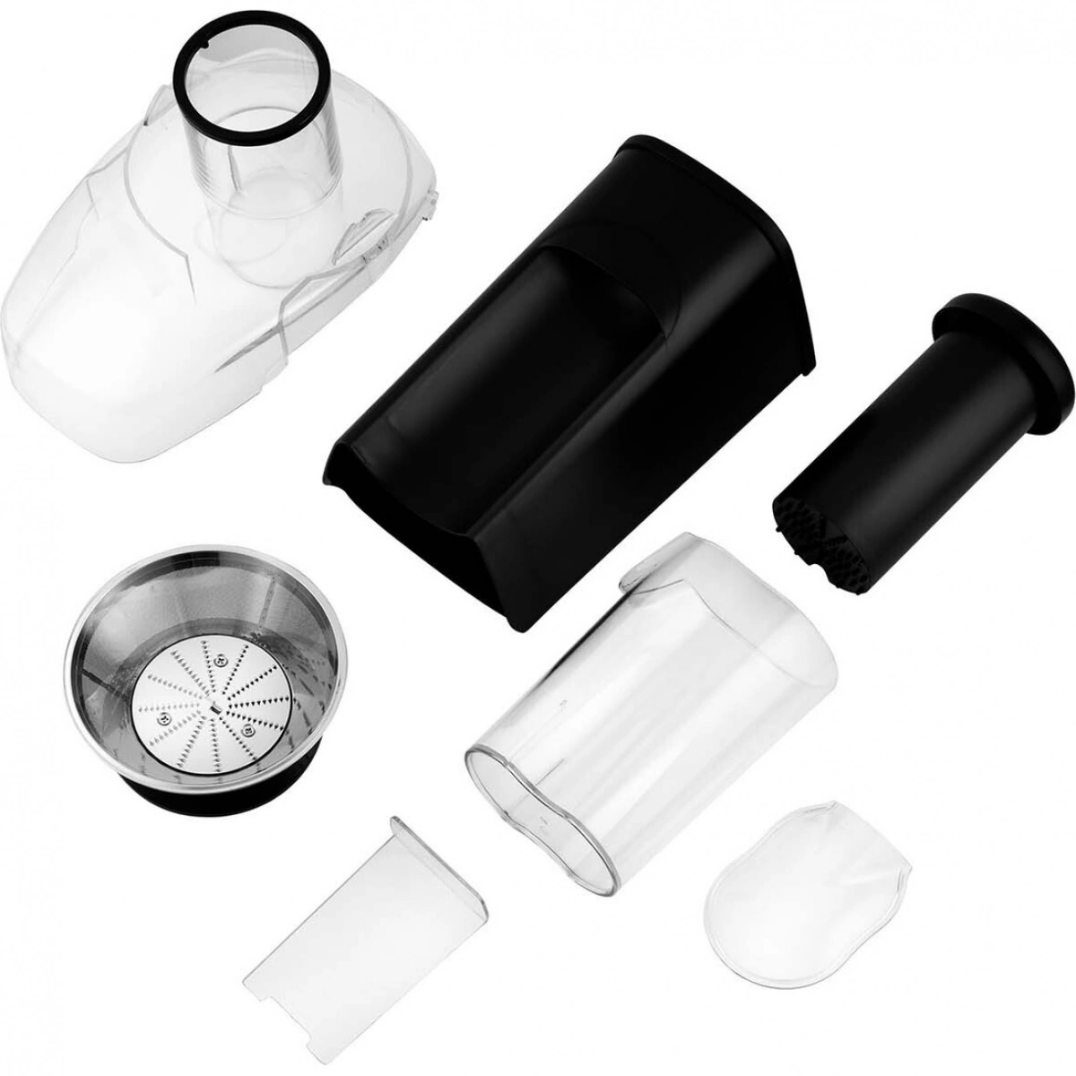 Надёжная и удобная конструкция. Все комплектующие соковыжималки выполнены из надёжных материалов. Корпус соковыжималки выполнен из прочного пластика, способного выдержать большие нагрузки. Чаша, крышка и толкатель из прочной пищевой пластмассы, а фильтр из нержавеющей стали.