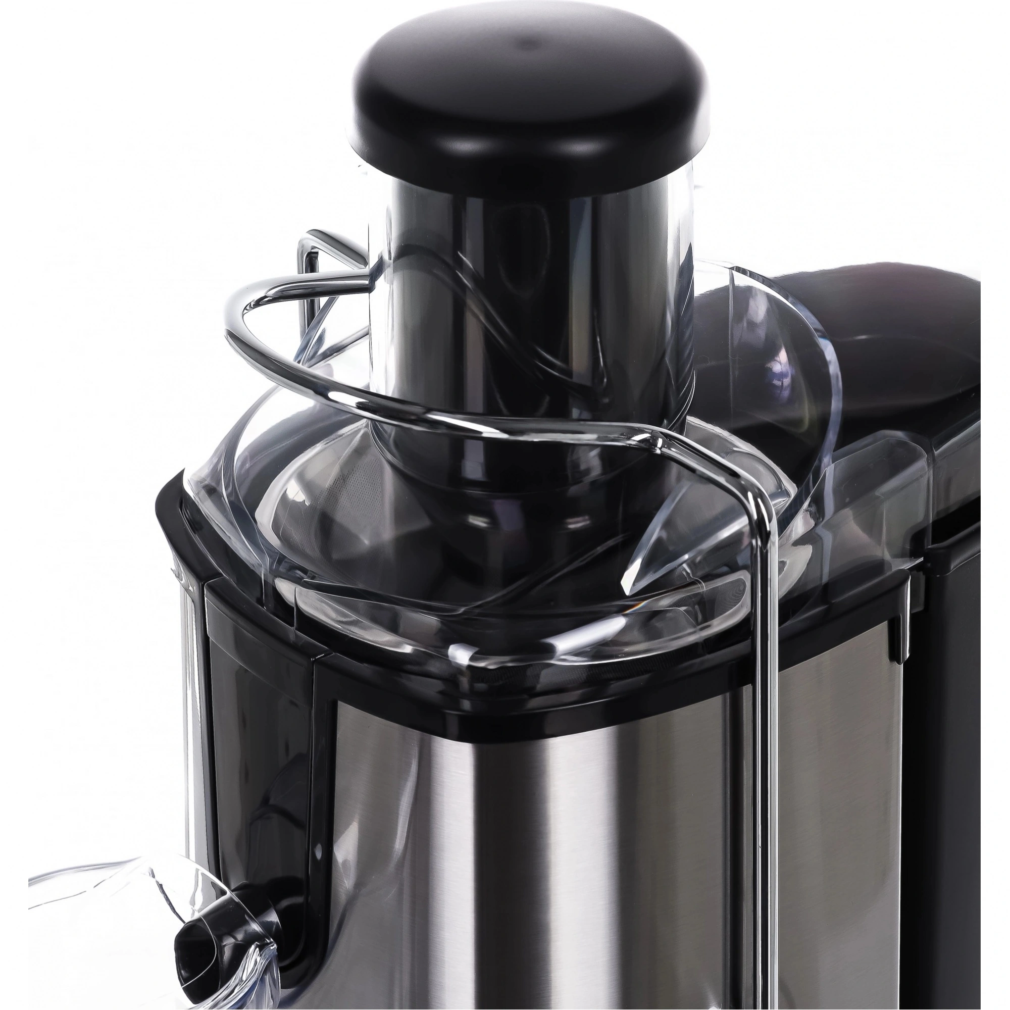 Защитная блокирующая ручка. В конструкции соковыжималки предусмотрен защитный механизм, который препятствует включению устройства в неправильно собранном виде. Соковыжималка не включится без надетой на крышку блокировочной ручки.
