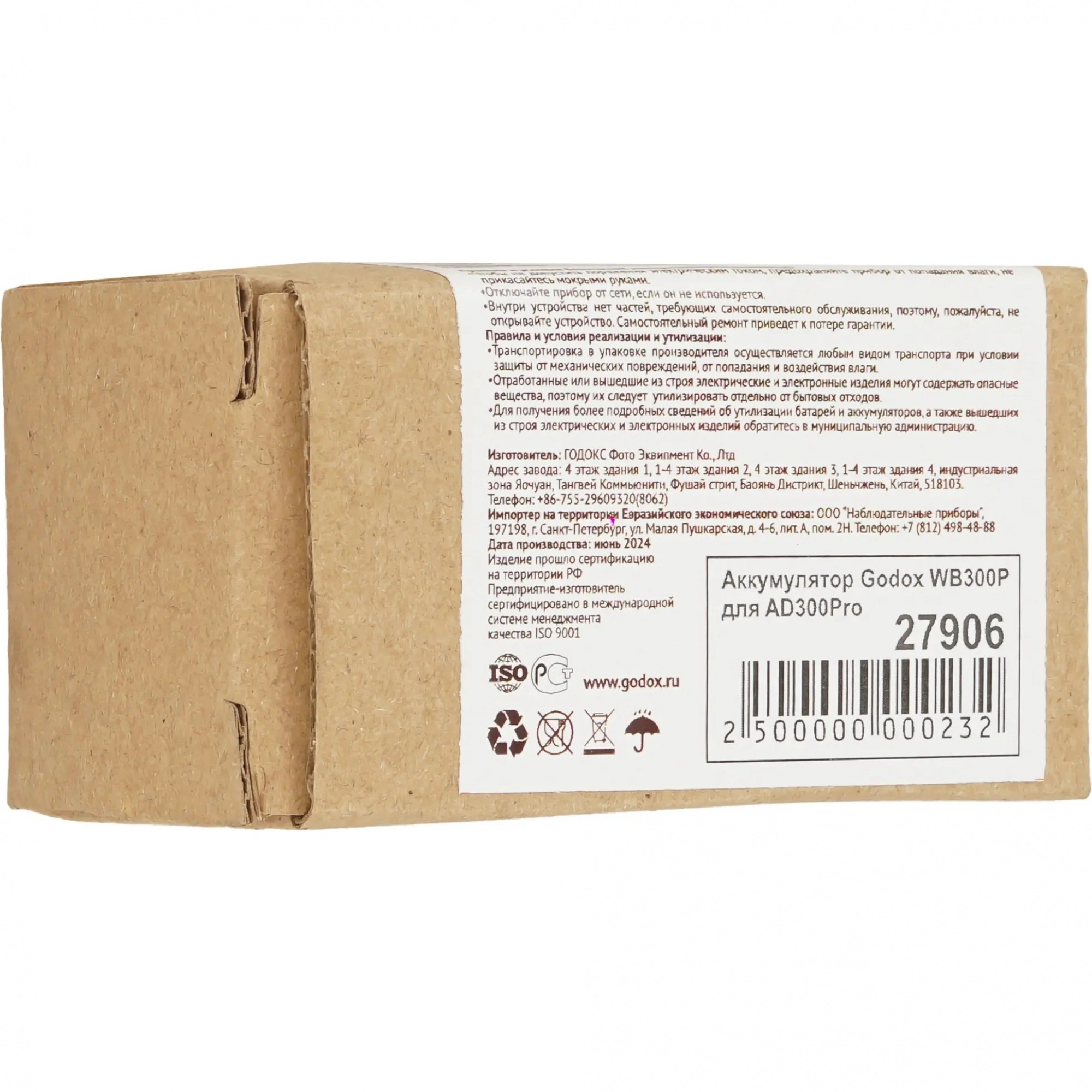 Аккумулятор Godox WB300P для Godox AD300Pro - это источник питания 14,4 В / 2600 мАч для вспышки Godox AD300Pro. Одного заряда аккумулятора хватит примерно на 300 импульсов при полной мощности.