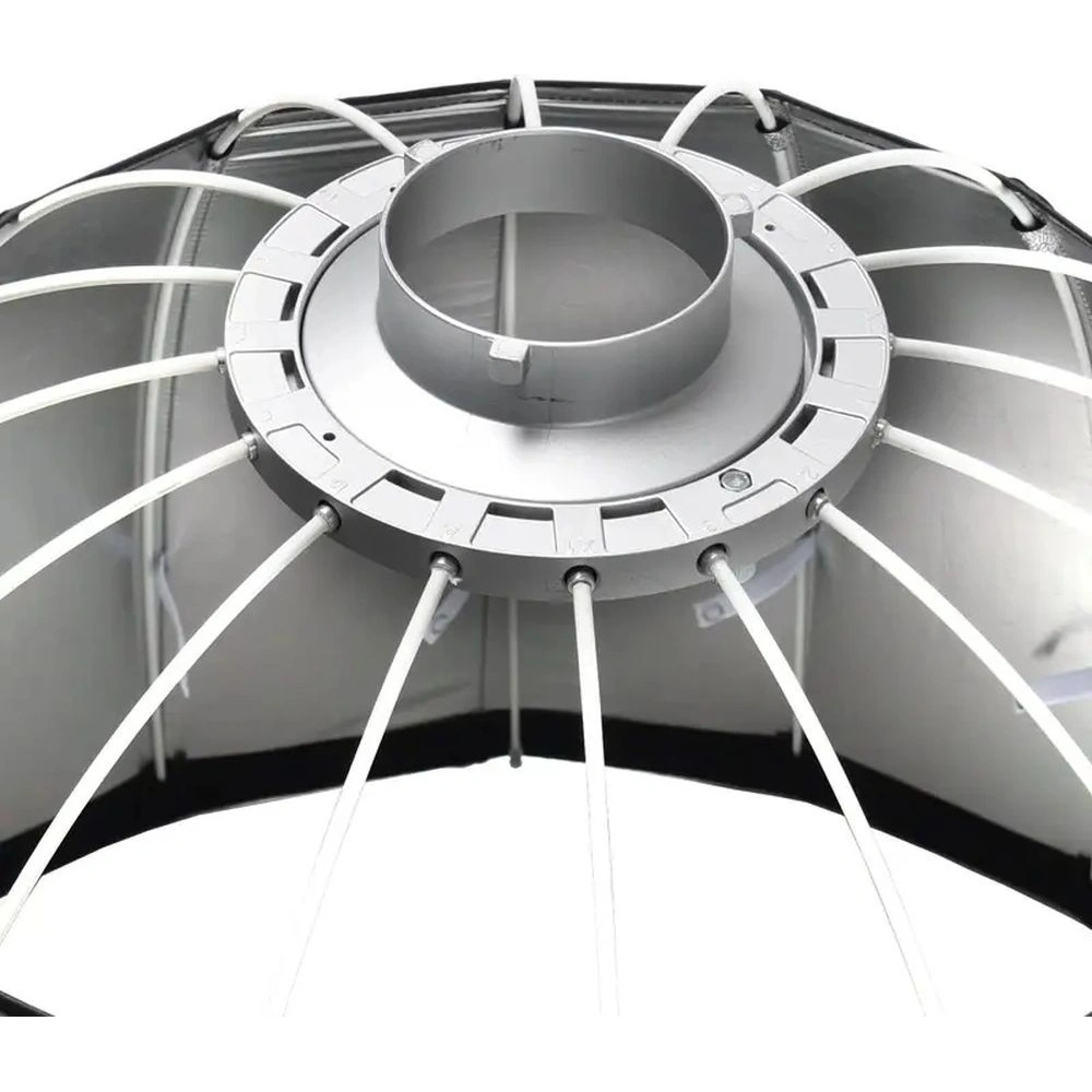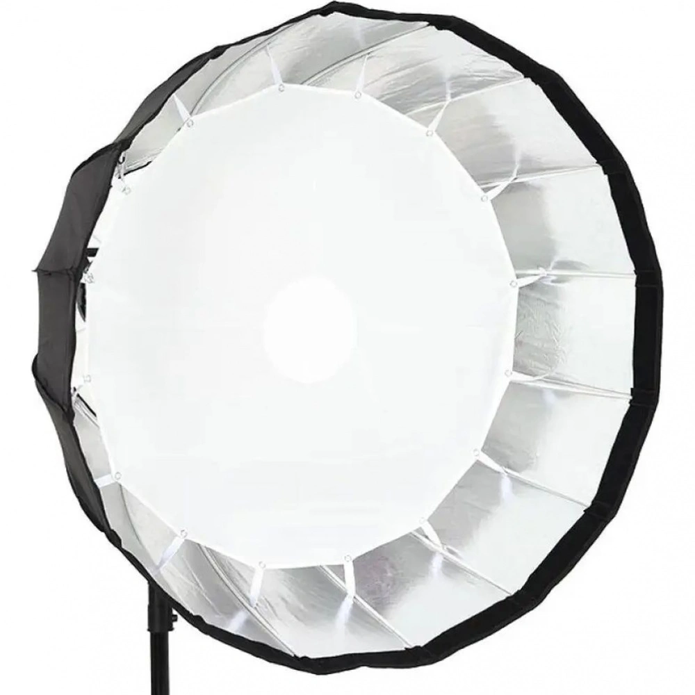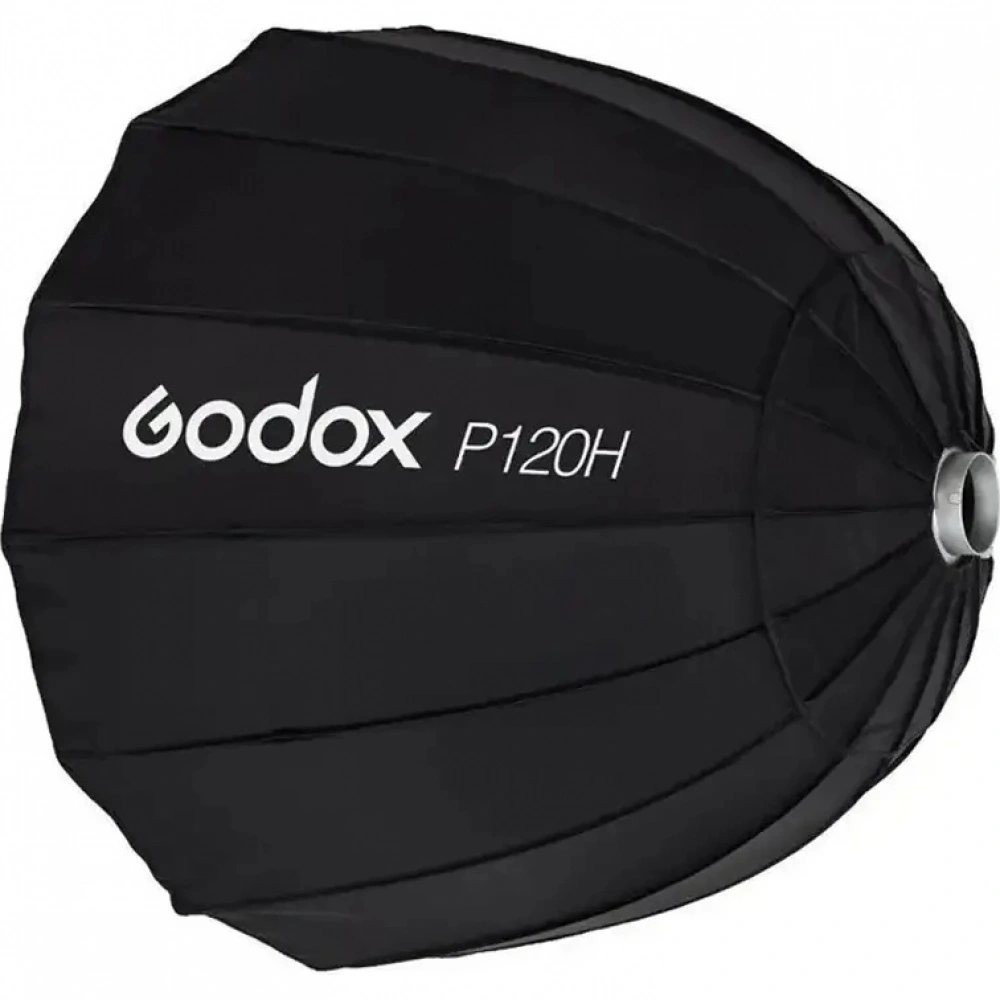 Godox P120H — глубокий параболический софтбокс диаметром 120 см и глубиной 74,2 см, выполненный в жаростойкой версии для работы с мощными студийными вспышками. Серебристое внутреннее покрытие и два съёмных рассеивателя создают высокий коэффициент полезного действия и характерный мягкий, но контрастный и направленный светотеневой рисунок. Байонет Bowens обеспечивает высокую совместимость с различными осветителями.