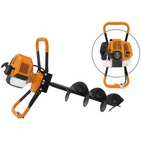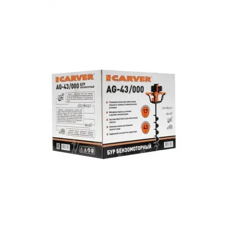 Мотобур Carver AG-43/000 – это производительный ручной инструмент для высверливания отверстий разной глубины как в различных типах почвы, так и в леднике. Благодаря высокой мощности, удобству и эргономичности данная модель может стать отличным выбором для использования как на даче или придомовом городском участке, так и на озере во время рыбалки. В основе Carver AG-43/000 используется двигатель на 1.7 л.с., способный обеспечить скорость вращения насадки до 6500 об/мин. Благодаря этому, а также возможности установки насадок с диаметром рабочей части до 500 мм данная модель отличается высокой производительностью и отлично подходит для выполнения даже самых сложных работ. Монтаж бура производится при помощи крепления диаметром 20 мм. Максимальная глубина бурения может достигать 2 м. Другой особенностью мотобура является удобство использования, что обусловлено корпусом с прорезиненными рукоятками и антивибрационной системой. Благодаря этому модель обеспечит комфорт при использовании в различных условиях. Другой особенностью модели является бак для топлива объемом 1.1 л, что может обеспечить продолжительную работу. Инструмент поставляется вместе с набором инструментов в фирменной упаковке. Бур приобретается отдельно.