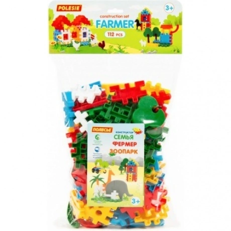Конструктор серии «Фермер» от компании «Полесье» позволяет малышу создать деревенскую усадьбу из ярких деталей. Построить домик, поставить забор, посадить деревья, завести на импровизированной ферме домашних птиц и животных… Игра с элементами конструктора полезна для развития мелкой моторики рук малыша, его речи и логического мышления. У ребёнка формируется понимание, что предметы бывают разных цветов, размеров и форм. Игра с конструктором развивает воображение малыша, его творческие способности, он учится самостоятельности и усидчивости. В данном комплекте 112 элементов. Конструкторы данной серии совместимы с конструкторами других серий: Луна-парк, Флора, Семья, Зоопарк и Смешарики.