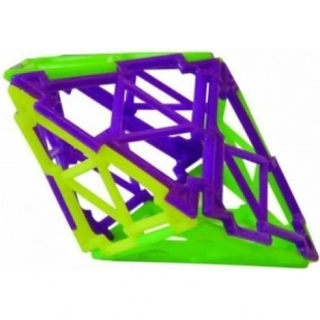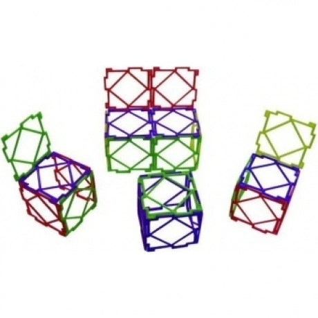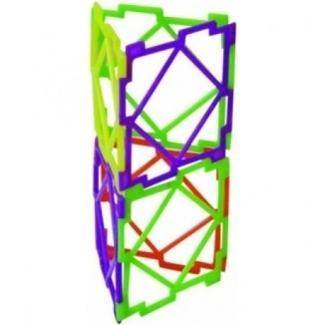 Развивающая игра – конструктор ПИФАГОР состоит из плоских элементов треугольной и квадратной формы, полых, с внутренними перегородками. Длина стороны треугольника 7 см, длина стороны квадрата 7 см. Стороны треугольников и квадратов имеют специальные прямоугольные пазы и выступы для шарнирного соединения друг с другом в произвольном порядке. Особенностями конструктора «ПИФАГОР» является шарнирное соединение деталей, которые могут поворачиваться относительно друг друга на угол до 270 градусов, и ажурная, рамочная конструкция деталей. В цветном методическом пособии, прилагаемом к каждому набору, приведены фотографии около 70 объёмных фигур и даны рекомендации по использованию конструктора при игре с детьми и их обучению геометрии.