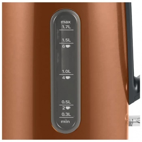 Шкала уровня воды (в чашках) поможет экономить энергию и время, заваривая только необходимое количество. Удобный носик разработан для легкого использования без разливов и брызг. Легко читаемая шкала уровня воды, которую видно с обеих сторон чайника, делает чайник удобным и для леворуких, и для праворуких пользователей. Тройная безопасность: автоматическое отключение, защита от перегрева и отключение при отсутствии воды, автоматическое отключение при снятии с цоколя. Легкость в обращении с помощью одной руки- наполнение водой нажатием одной кнопки