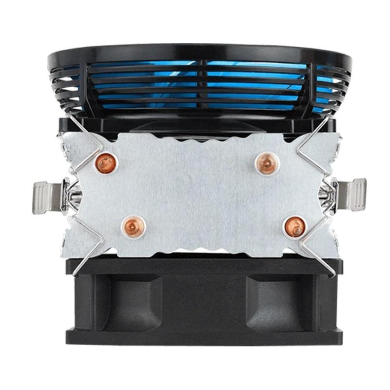 Имеющий башенную конструкцию кулер для процессора AeroCool Verkho 2 Dual обладает совместимостью с большинством распространенных в настоящее время сокетов. Модель, обеспечивающая рассеивание мощности до 120 Вт, наилучшим образом способна проявить свои возможности в составе системного блока универсального назначения. Особенностью конструкции кулера является «разнокалиберность» установленных вентиляторов: первый вентилятор имеет размеры 90x90 мм, а второй – 80x80 мм. В наличии 2 тепловые трубки. Основание и радиатор изготовлены из алюминия. Кулер относительно легок. Высота устройства составляет 135 мм. У вас будет возможность использовать сравнительно компактный корпус. Кулер AeroCool Verkho 2 Dual характеризуется довольно широким диапазоном скорости вращения вентиляторов. Минимальная частота вращения составляет 800 оборотов в минуту, а максимальная – 2300 оборотов в минуту. Уровень шума в процессе работы кулера не превышает 27 дБ. Это отличный показатель. Кулер вряд ли можно будет услышать на фоне обычного шума. В комплекте – термопаста, крепеж и документация.
