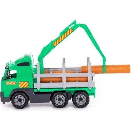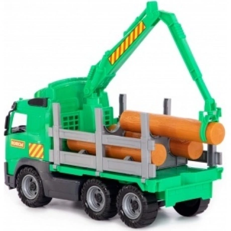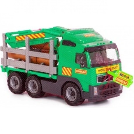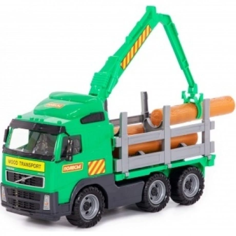 Автомобиль-лесовоз из серии «Volvo» - игрушка, внешний вид которой максимально приближен к реальному автомобилю. При производстве используется пластмасса высокого качества, что гарантирует долговечность машинки. Борта игрушки открываются, позволяя перевозить более габаритные грузы. Большие колеса обеспечивают хорошую проходимость на разных поверхностях. В комплект входит набор бревен, которые можно разгружать и загружать в кузов автомобиля. Игрушка продается в сеточке.