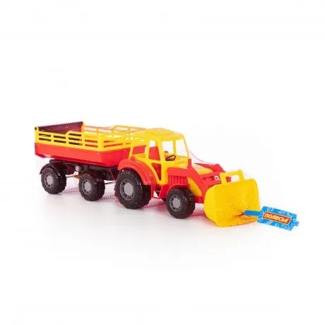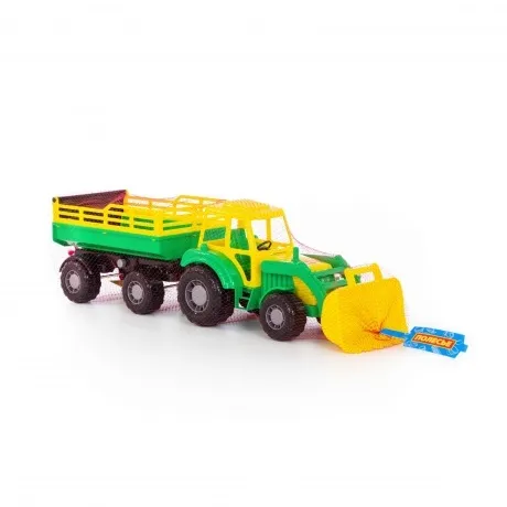 Пластиковый трактор Алтай 35363 с прицепом №2 и ковшом от бренда Полесье - отличная игрушка для мальчиков от 3 лет, которой можно найти применение в любое время года. Прочный пластик не деформируется под воздействием температур, автотранспорт подходит для зимних забав и летних игр в песочнице, на пляже. Ковш с легкостью расчистит дорогу, а вместительный кузов с высокими бортами позволит перевозить различные грузы и небольшие игрушки, во время разгрузки кузов прицепа поднимается, а задний борт откидывается. Яркие детали спецтранспорта заметны на снегу или песке, грузовик не забудется на детской площадке после игры. Размер: 65х17х18 см. Внимание! Товар представлен в нескольких видах без возможности выбора. Цена указана за 1 шт.