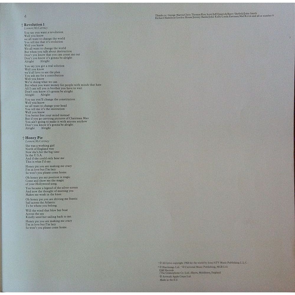 | C4 | Everybody's Got Something To Hide Except Me And My Monkey | |
