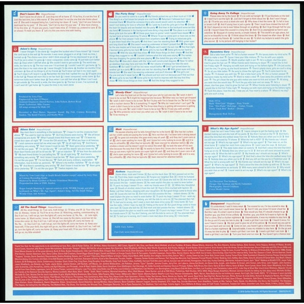 Dumpweed, Don't Leave Me, Aliens Exist, Going Away to College, What's My Age Again?, Dysentery Gary, Adam's Song, All the Small Things, The Party Song, Mutt, Wendy Clear, Anthem