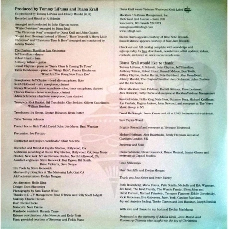Альбом Christmas Songsв исполнении канадской джазовой певицы и пианистки Дианы Кролл и Clayton-Hamilton Jazz Orchestra.