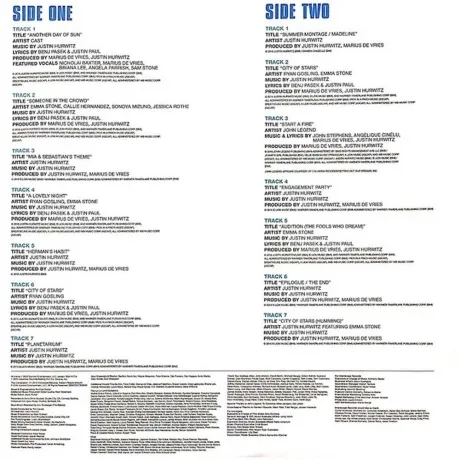 Another Day Of Sun, Someone in the Crowd, Mia & Sebastian's Theme, A Lovely Night, Herman's Habit, City of Stars, Planetarium, Summer Montage/Madeline, City of Stars, Start A Fire, Engagement Party, Audition (The Fools Who Dream), Epilogue / The End, City Of Stars (Humming)