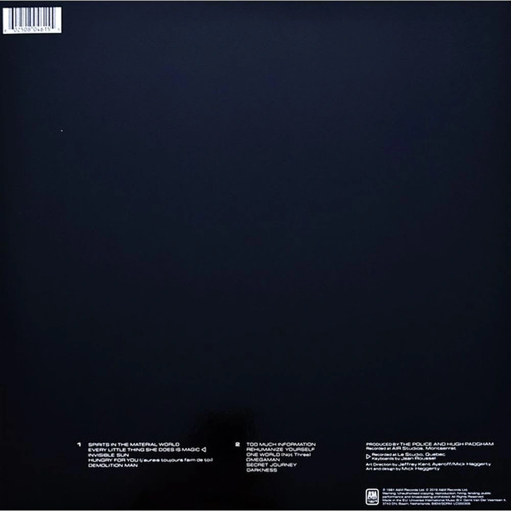 Spirits In The Material World, Every Little Thing She Does Is Magic, Invisible Sun, Hungry For You (J'Aurais Toujours Faim De Toi), Demolition Man, Too Much Information, Rehumanize Yourself, One World (Not Three), ?megaman, Secret Journey, Darkness