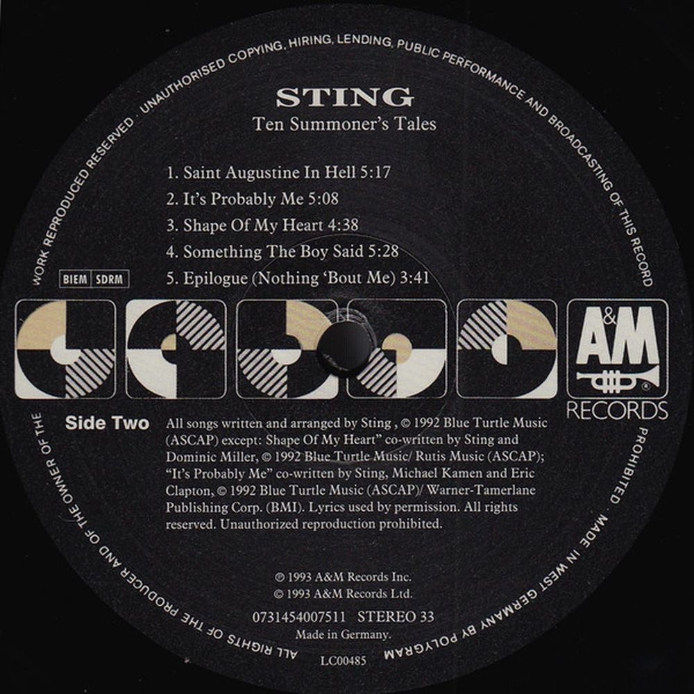 Sting - Ten Summoner's Tales (0731454007511) виниловая пластинка - фото, характеристики, описание и цена представлены на карточке товара. Для того чтобы купить этот товар по цене 4123 руб., вам надо или позвонить по телефону 8(812)426-98-99 в Санкт-Петербурге, или оформить покупку в личном кабинете, добавив товар в корзину.