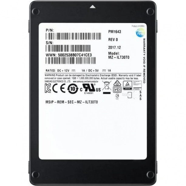 Серверный SSD-накопитель Samsung PM1643a [MZILT1T9HBJR-00007] объемом 1920 ГБ часто используется для корпоративных систем. Жесткий диск со стандартным форм-фактором 2.5” подключается к материнской плате через SAS-интерфейс. Накопитель выдерживает огромный рабочий ресурс, в том числе перезапись до 3504 ТБ информации. SSD-диск Samsung PM1643a в отличие от предшественников HDD отличается моментальным запуском системы и тяжелых данных. Чтение информации осуществляется со скоростью 2100 Мбайт/с, а запись проводится при 1800 Мбайт/с. Твердотельный накопитель станет надежным местом хранения для важной информации.